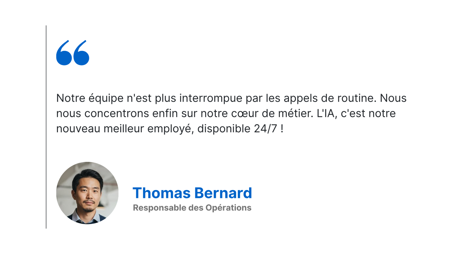 NEOERA n'est pas un simple service de réponse téléphonique : nous réalisons des opérations concrètes pour les entreprises. Nos agents, disponibles 24 h/24 et 7 j/7, contactent et présélectionnent les prospects, planifient des rendez-vous et appellent les personnes ayant rempli un formulaire en ligne. Bénéficiez d'un blocage anti-spam gratuit et d'intégrations de pointe pour encore plus de valeur.